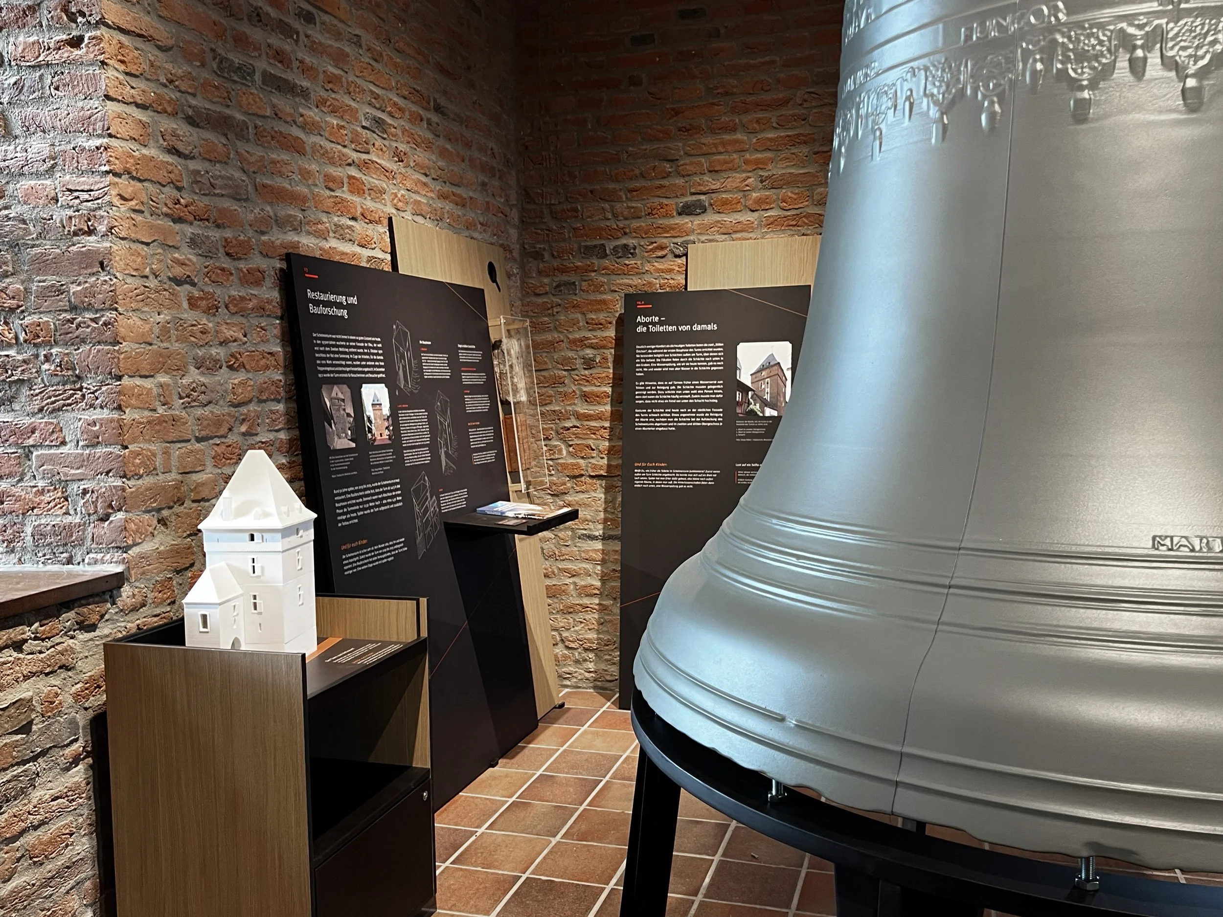 Geplant wurde die Ausstellung von Lim und Freunde. Zu den Highlights gehören ein begehbares 1:1 Glockenmodell der „Trinitas“ in St. Gereon, die Lebendige Chronik als tischfüllende multimediale Installation rund um den Schelmenturm und ein 1:50 Modell des Turms, das von Jung und Alt zusammengesetzt werden kann. – Und natürlich kann man ein Selfie mit dem Schelm machen.